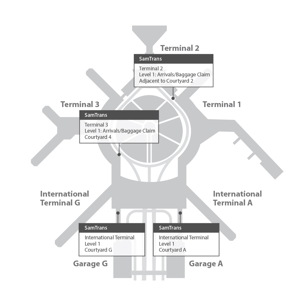 At the terminals, SamTrans buses stop at: